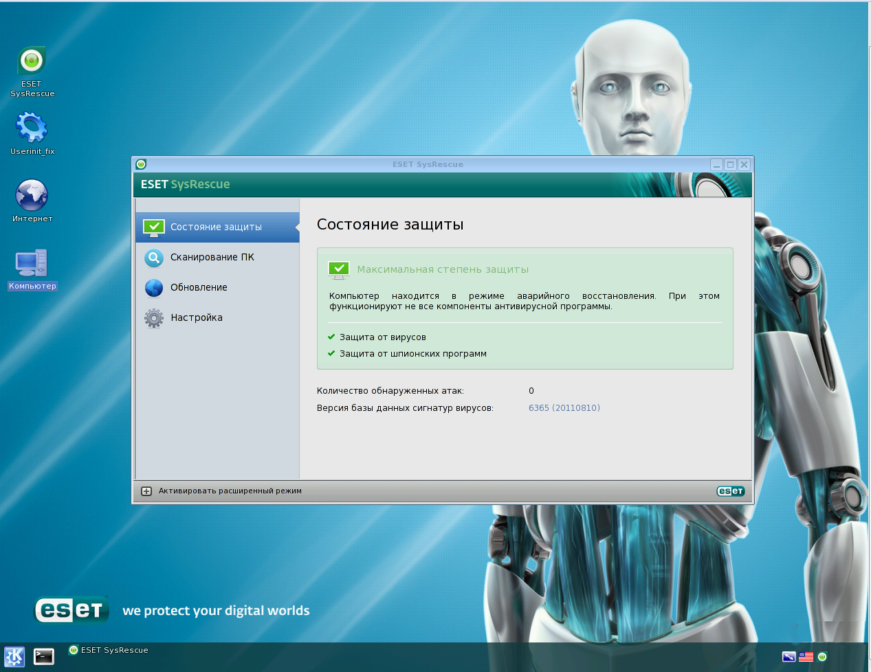 LiveCD ESET NOD32 – загрузочный диск, при помощи которого Вы сможете быстро запустить компьютер и восстановить работоспособность выведенной из строя операционной системы.Кроме того, LiveCD ESET NOD32 позволит гарантированно удалить вирусы, потенциально опасные файлы и сложное вредоносное ПО, которое не удалось обезвредить в обычном режиме работы.